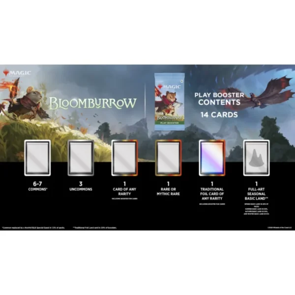 Magic the Gathering: Bloomburrow – Play Booster zawiera 14 losowych kart: