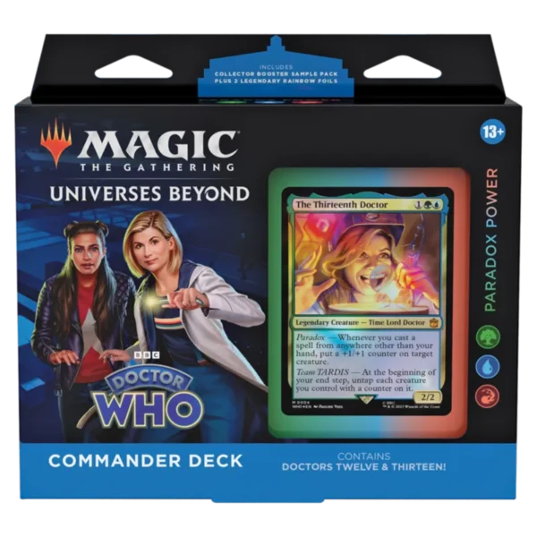 W wariancie Commander czterech graczy staje przeciwko sobie, by stoczyć zażartą walkę, pokazując swoją potęgę i umiejętności taktyczne, jednak tylko jedna osoba może zwyciężyć. Każda talia 100 kart Magic the Gathering: Universes Beyond – Doctor Who – Commander Deck to wygodne rozwiązanie dla fanów tego formatu – wystarczy tylko rozpakować, potasować i można grać!