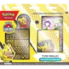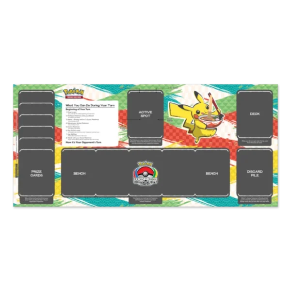 W zestawie znajdziesz gotową do gry mistrzowską talię. Do tego pięknie zdobione pudełko na talię. Uwaga w pudełku zmieścisz niezakoszulkowaną talię kart. Dodatkowo przypinkę z logo mistrzostw i moneta do gry oraz plakat i mata do gry.